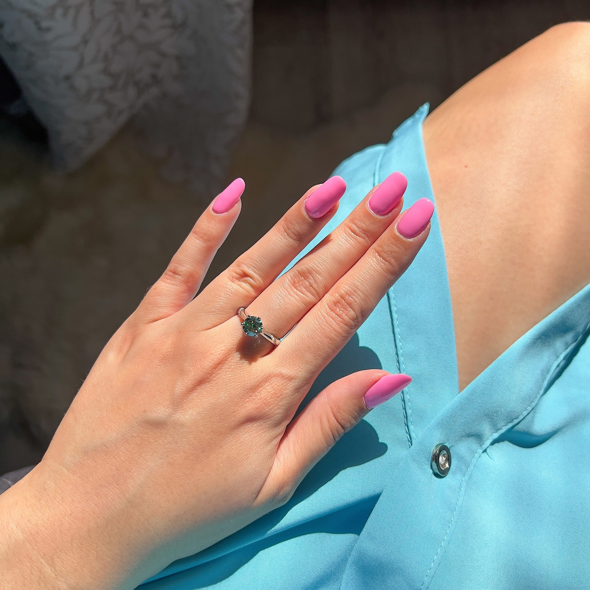 Кольцо из серебра с сине-зелёным муассанитом с AliExpress. Обзор покупки.
