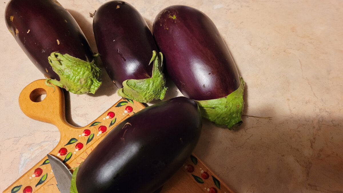 Выбираем спелые, крупные баклажаны. Промываем их.