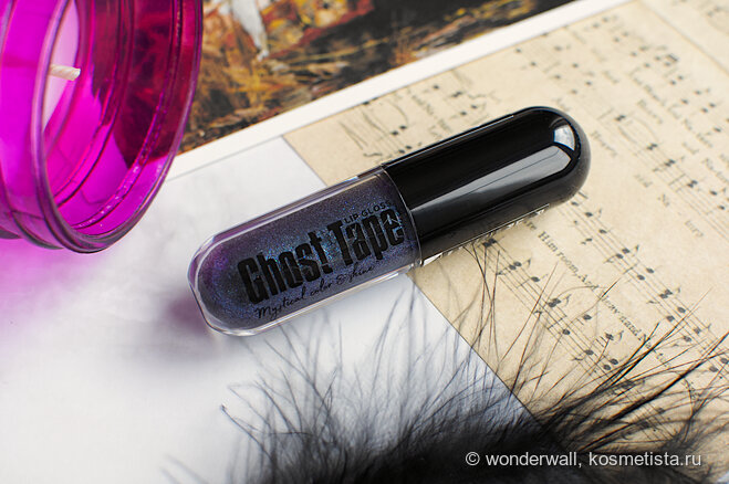 Прозрачный призрак. Палетки Ghost Tape уже успели понравиться многим. А что насчёт блесков? Блеск для губ Parisa Cosmetics Ghost Tape 02 Про оформление ничего особенного не скажу, оно обычное, без запоминающихся деталей. Но шрифт мне очень нравится! На блеске была защитная плёнка. Я выбрала оттенок 02. Его можно увидеть на наклейке. Объём флакона — 3 мл. Блеск можно рассмотреть со всех сторон благодаря прозрачному пластику. Фиолетового здесь мало, хотя по фотографиям кажется, что он здесь есть. Но нет, это блик от стеклянной лавандовой свечи. В многообразии шиммера можно разглядеть целый спектр цветов: и фиолетовый, и серебряный, и золотой, и бирюзовый. База серая, хотя вид блеска во флаконе создает впечатление, что она будет бирюзово-зеленой. Спонжик небольшой, чтобы плотно прокрасить губы, надо воспользоваться им как минимум 2 раза. На свотчах блеск нанесен очень плотно. Видно, что он тёмный, но всё-таки полупрозрачный. Шиммер преимущественно бирюзовый, но есть и те самые оттенки, о