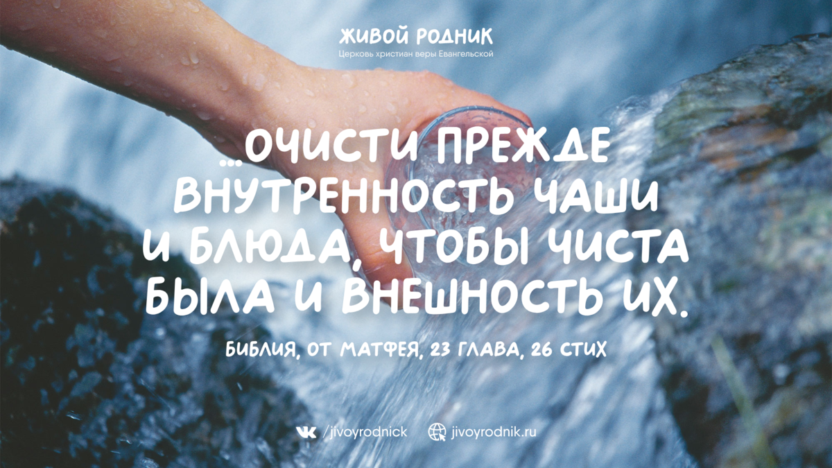 Фарисей слепой! очисти прежде внутренность чаши и блюда, чтобы чиста была и внешность их. Библия, от Матфея, 23 глава, 25-26 стихи