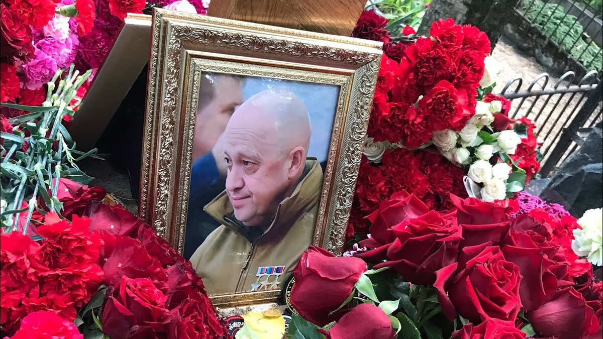 Пригожина похоронили рядом с отчимом и родным отцом. А над его могилой поставили два флага: один принадлежит Российской Федерации, а второй его компании Вагнер.