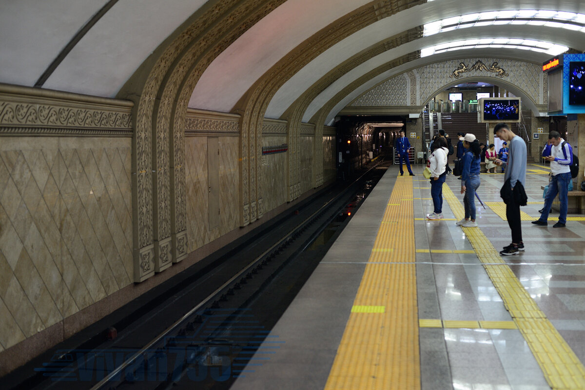 На платформе неизменно стоит работник станции и свистит в свисток, если кто-то заходит за ограничительную линию. Дисциплина в метрополитене Алматы — как у Мавзолея.