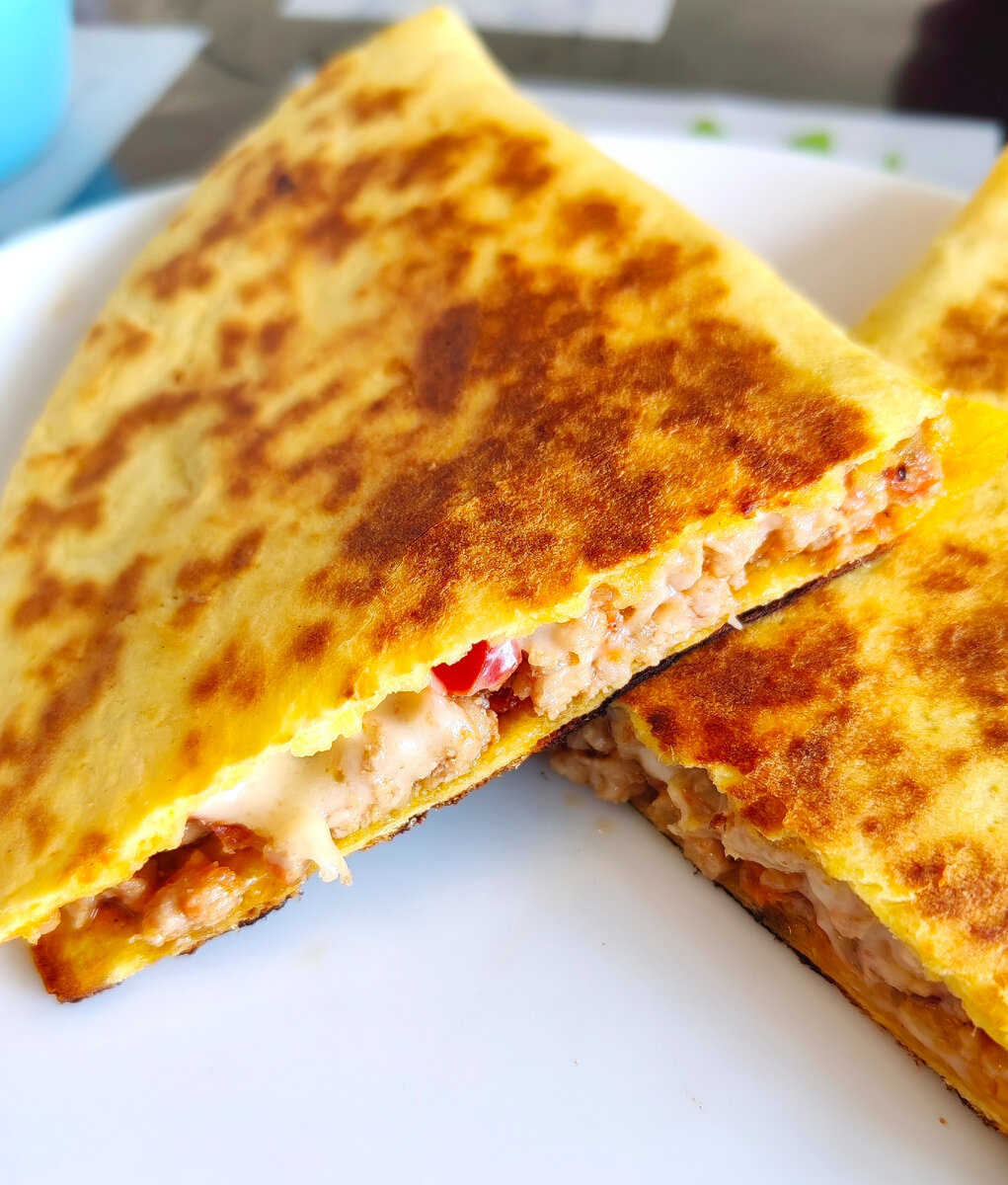 Всем привет! Купила недавно сырные лепешки по типу тортильи. Беру их для быстрых завтраков в формате пиццы на сковороде. В этот раз обратила внимание на рецепт от производителя: в формате сэндвичей с фаршем, сыром и овощами. И прям захотелось) Продукты: На все приготовление уходит полчаса. Сначала нужно обжарить лук с помидорами. Овощи нарезаются мелким кубиком: Добавить колечки перца Когда овощи поджарятся - к ним выложить фарш (у меня 400 грамм, это на 4 порции). Фарш тоже обжаривается, а потом тушится с добавлением кетчупа (пасты) и воды. Много воды не лью. Она нужна для того, чтобы мясо стало мягким. Лишнюю жидкость по готовности начинки нужно выпарить. Далее начинка укладывается на половину лепешки и посыпается тертым сыром. Накрывается второй половиной и на тихом огне обжаривается на сухой сковороде. Будьте внимательны: если перегреть сковородку, то лепёшка быстро подгорит. Получается вкусный, сочный завтрак. Обедать после него мы захотели нескоро. Очень вкусно со свежесварен