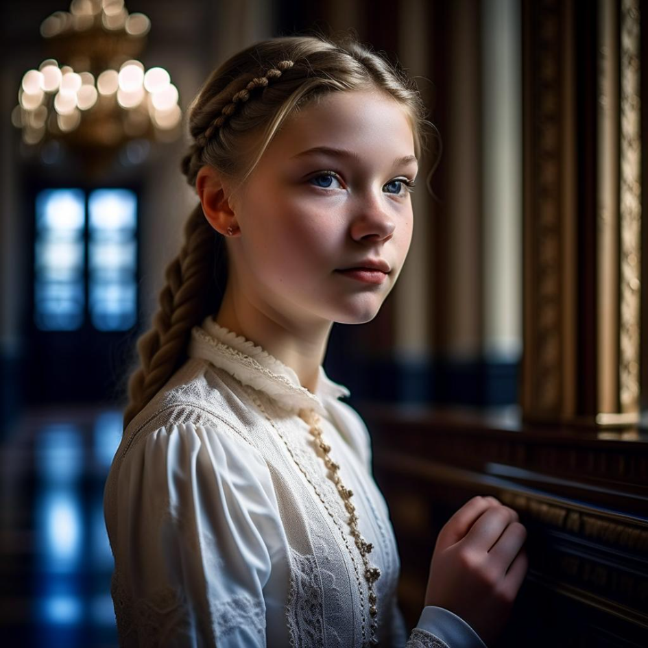 Ему не составило труда быстро отыскать Ксению Александровну среди гудящей наряженной толпы. Однако его внимание привлекла худенькая незнакомка с тяжелыми русыми косами, «затянутая»в массивное старинное светлое платье. Девушка обернулась... и изумленный Матвей узнал в ней Таню Ларину. Юноша ахнул. Таню, подругу своего детства, он помнил маленькой пухлой большеглазой девочкой с забавными розовыми бантиками на макушке. Нынешняя Таня не только не походила ничем на ту маленькую пятилетнюю Танюшку, она не была похожа ни на лощёную Люду, ни на разбитную Павлиашвили, ни на одну из девчонок Никитина. Это была уже скорее, юная девушка, нежели четырнадцатилетняя девчонка-подросток. Казалось, будто она пришла откуда то из другого мира. Или наоборот, будто сам Матвей попал в какую то сказку или фильм, где есть бал и сказочная принцесса...