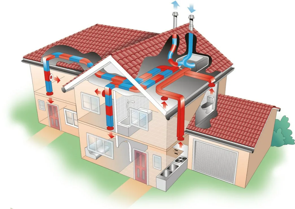 Современная искусственная вентиляция в доме включает, как правило, следующие основные элементы: