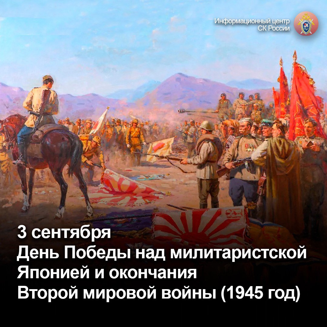 3 сентябряДень воинской славы России – День Победы над милитаристской Японией и окончания Второй мировой войны (1945 год)