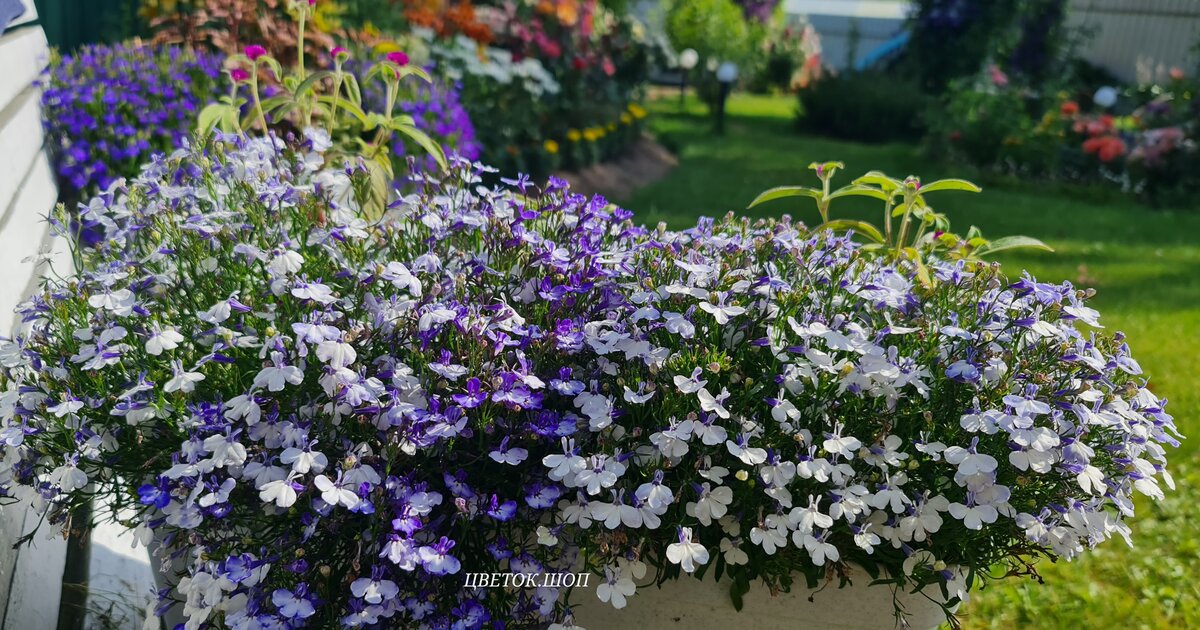 Всем привет! На улице осень, а она свежа, весела и полностью усыпана цветами! Нежная, воздушная обильноцветущая лобелия. Я не представляю свой сад без этого чудесного однолетника, выращиваю каждый год и именно в кашпо, потому что так она смотрится наиболее эффектно. Цветы у лобелии мелкие, но их не счесть! Тысячи маленьких ярких "мордочек" сливаются воедино и превращаются в одно цветущие облако, лобелия цветёт так, что не видно листвы! В уходе не требовательна, но чтобы она не потеряла свою декоративность, нужно тщательно следить за поливом. Лобелию нельзя пересушивать, иначе она быстро начинает увядать и прекращает цвести. Мне больше всего нравится лобелия синих и фиолетовых оттенков, она так же может быть белой, розовой, лавандовой и двухцветной. В этом году я сеяла сорта: Доли Блю и Ривьера Блю Сплеш, все они на фото. Семена были в гранулах, поэтому сеять их было проще простого и главное потом не надо пикировать рассаду. Выращивала ещё сорта "Император Вилли", "Хрустальный дворец"
