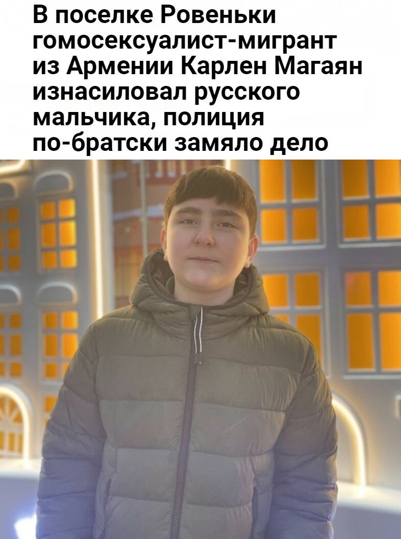 В поселке Ровеньки Карлен Магаян гомосек-мигрант из Армении изнасиловал русского мальчика, полиция по-братски замяло дело