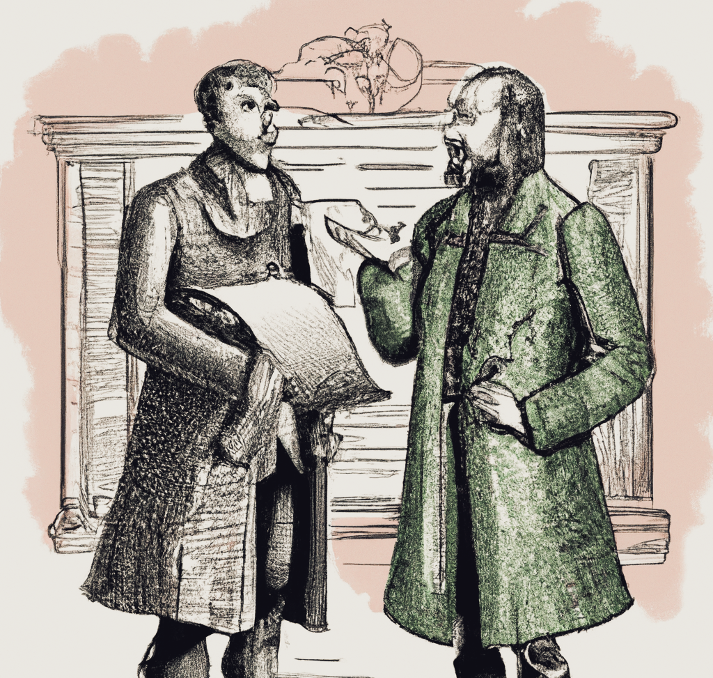 Всё началось с прибытия немецкого губернатора, человека, известного своей честностью и неподкупностью. Русские местные жители, однако, сначала не были уверены в его намерениях. Умные и настороженные, они подозревали, что даже в самом честном губернаторе может скрываться злодей. Губернатор приказал запрячь свою коляску, нацепил мундир, на котором гордо сверкали все ордена, и отправился на миссию по восстановлению порядка в местности. Однако приключения начались ещё до его прибытия к назначенному месту. Лес, овраги и невероятные трясины сделали своё дело, разбив губернатора и его коляску. Уставшие кони остановились перед небольшой церковью, не в состоянии вытащить коляску из трясины. В это время разбойники, возглавляемые главарём по имени Рубцовый Нос, приблизились. Рубцовый Нос был выдающимся по своим размерам и брутальному виду, с косой саженью на плечах, кистенем в руке и пистолетом за поясом. Увидев несчастного немецкого губернатора в его несуразном колпаке, Рубцовый Нос не смог с