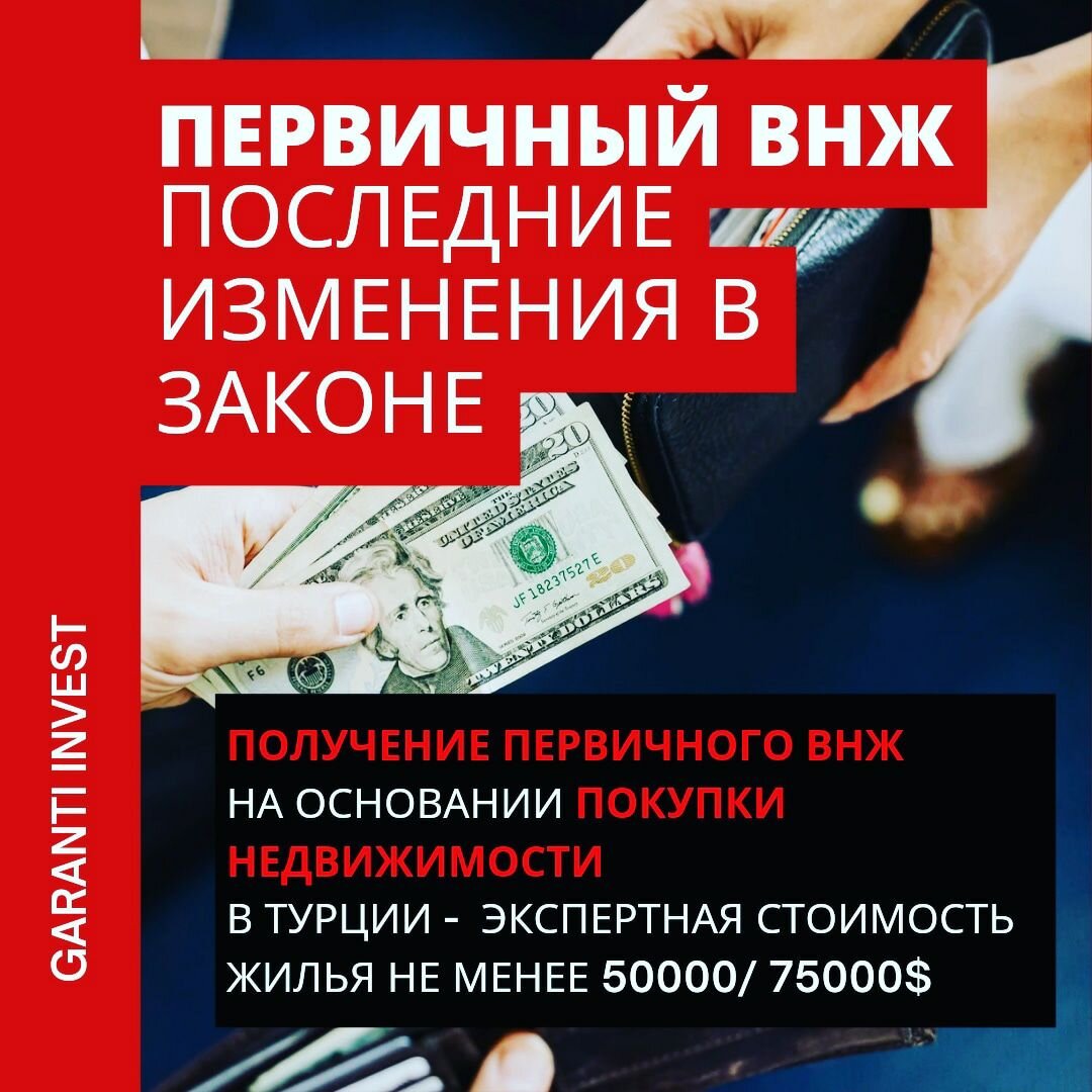Важные правила для получения иностранцами ПЕРВИЧНОГО ВНЖ через покупку недвижимости. Согласно Решению Президиума Миграционного Управления Турции (26.04.2022), первичный вид на жительство на основании свидетельства права собственности на недвижимость(ТАПУ/TAPU) выдаётся только тем иностранцам, кто приобрёл недвижимость в пределах от 50000 до 75000 $, в зависимости от города. Для тех, кто приобрел недвижимость, ниже этой стоимости, но ДО 26 АПРЕЛЯ 2022 года – правила остануться прежними, они могут продолжать получать внж именно по тапу. Ниже приведён список провинций, где необходимая стоимость приобретаемого иностранцами жилья под ВНЖ по ТАПУ должна быть не менее 75000$: Adana/Ankara/Antalya/Aydın/Balıkesir/Bursa/Denizli/Diyarbakır/Erzurum/Eskişehir/Gaziantep/Hatay/İstanbul/İzmir/Kahramanmaraş/Kayseri/Kocaeli/Konya/Malatya/Manisa/Mardin/Mersin/Muğla/Ordu/Sakarya/Samsun/Şanlıurfa/Tekirdağ/Trabzon/Van В остальных провинциях Турции иностранцам можно купить жильё под ВНЖ по ТАПУ по ц