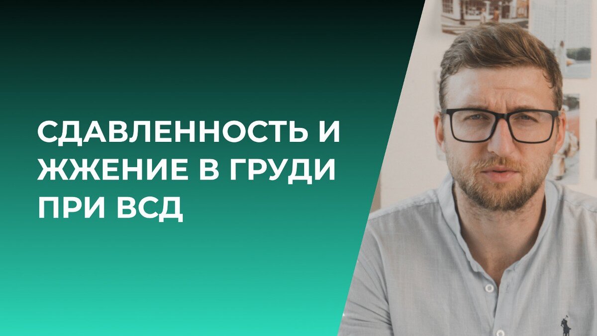 Начнём с того, что сдавленность и жжение в груди является одним из симптомов страха в теле. То, что это называется симптомом ВСД, равносильно симптомам тревожного расстройства, невроза и страха. Это все одно и то же. Важно понимать, что когда у вас возникает страх, он запускает цепочку симптомов. Вы начинаете чувствовать и напряжение, и сердцебиение, и головокружение, у кого-то - позывы в туалет, нереальность происходящего, жжение, онемение, шум в ушах и так далее. Вопрос здесь заключается в двух моментах: Первый момент - то направление переживаний, которое у вас есть. Я часто рассказал это в других статьях. Когда вы переживаете за своё здоровье, то больше ориентируетесь на физические симптомы. Например, такие как: сердцебиение, головокружение. Когда переживаете за психику, то больше основываетесь на ощущениях нереальности, то есть на дереализацию. Но в любом случае ваши физиологические особенности такие, что при возникновении страха у вас происходят те или иные симптомы. Например, я ч