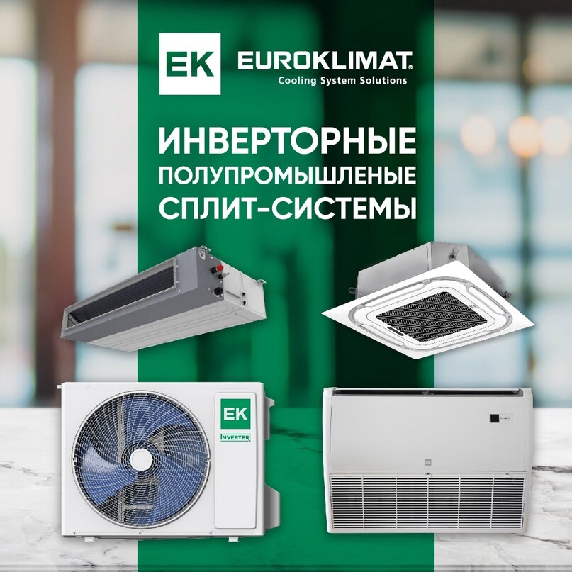 В ассортименте Euroklimat данный сегмент оборудования представлен кассетными, канальными и напольно-потолочными кондиционерами производительностью от 5 до 17 кВт.