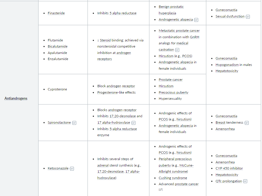 - Антиандрогены могут быть использованы для лечения гирсутизма , при использовании надежной контрацепции, при отсутствии адекватного ответа от КОК и косметологических услуг в течение 6 месяцев.