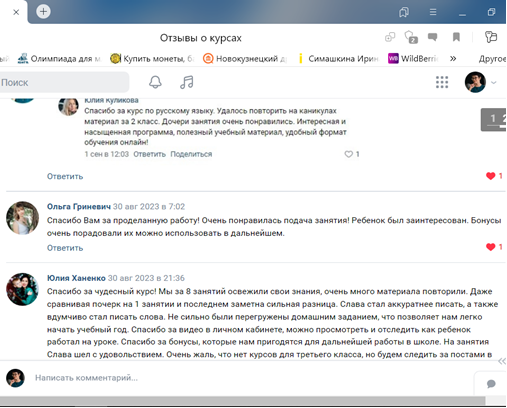Продолжительность – 45 минут + перерыв на 15 минут (для записи занятия и небольшого отдыха)+ еще 45 минут. Итого получается 2 занятия в неделю по воскресеньям. Почему по воскресеньям? Так ведь в рабочие дни у деток, кроме школы и домашних заданий, еще кружки и секции. А в воскресенье можно много отдыхать и чуть-чуть позаниматься. Количество учеников в группе: 4-6. Занятия онлайн - это отличная возможность подтянуть свои знания по математике и русскому языку! Грамотная и интересная подача материала вместе с позитивным настроем позволяет добиться максимальной результативности. Какие преимущества моих групповых занятий? Во-первых, группа — это не школьный класс! Многие думают, что групповые занятия — это 10, 20 или даже 30 учеников единовременно. У других репетиторов возможно так и есть, но у меня в каждой группе всего от 4 до 6 учеников. Получается — микрогруппа. Внимания хватит всем! Во-вторых, в группе здоровая конкуренция между учениками. Атмосфера, царящая во время групповых занятий,