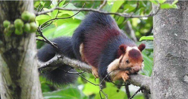 Видали ли вы когда нибудь такую милую и огромную белочку?) Если нет, то сейчас увидите. Интернет наперебой бросился спрашивать друг у друга, куда катится экология, тревожиться, не пора ли завязывать с горячительными блюдами после шести, и возмущаться беспределом фотошоперов. *ирония* Поводом стала вот эта фотосерия чудо-юдо рыбы-зверя, снятая в Индии в лесу в районе Патханамитта 39-летним фотографом по имени Каушик Виджаян (Kaushik Vijayan). Главным образом, разгоряченная толпа сомневалась, что животное всамделишное. Но «Википедия» развеивает мечты скептиков: еще какое реальное! Это малютка из клана индийских гигантских белок, или просто индийских белок, также известных как индийские ратуфы (на латинском — Ratufa indica). Что о об этом животном известно человечеству? Вид грызунов из рода гигантских белок. Травоядное. В названии заложена подсказка: регион обитания в дикой природе — влажные зеленые леса Индостана. Как и рядовой Пикабушник, ведет весьма рассеянный дневной образ ж