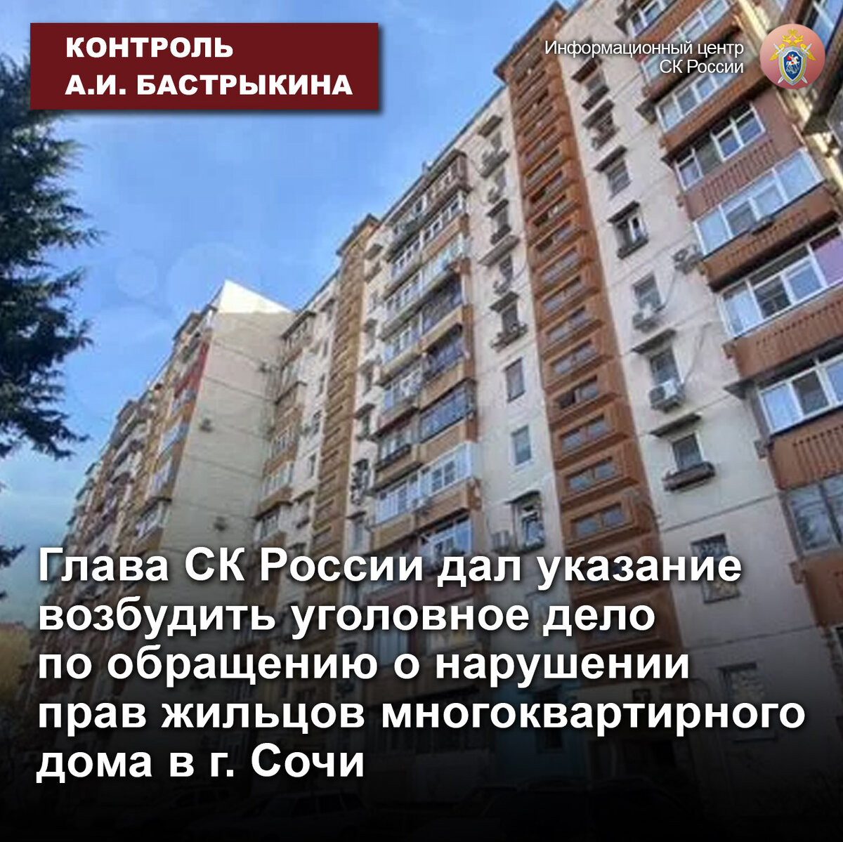 Глава СК России дал указание возбудить уголовное дело по обращению о нарушении прав жильцов многоквартирного дома в г. Сочи