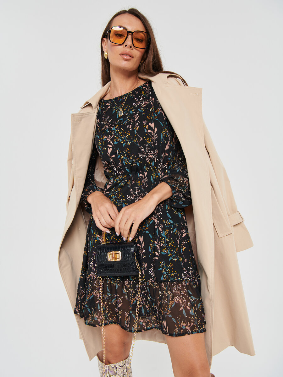 Модель имеет полуприталенный крой, не сковывает движения и позволяет создать тот самый летящий, воздушный образ. Длинный рукав скрывает то, что хочется скрыть. Кто-то скажет, что платье не закрывает ноги, но вопрос открытости любой части тела кроется в вашем собственном комфорте. Если вам комфортно в платьях длиной до колен, значит эта ваша модель! И конечно же никто не отменял плотные чулки. Под это платье выбирайте чёрный, графитовый, тёмно-синие или розовые цвета.