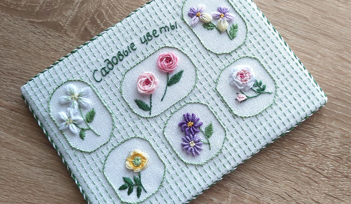 Сегодня покажу как я оформила свой семплер по объемной вышивке "Садовые цветы". 1. Сначала нужно приготовить кусок картона размером с вашу вышивку, у меня это прямоугольник 20 х 15 см. Затем загнуть два края ткани по длинной стороне и прошнуровать крепкой ниткой, как показано на фото. 2. Потом подогнуть уголки коротких сторон ткани и также прошнуровать. 3. Далее я прошила загибы углов ткани. 4. Вот такой вид получила вышивка в натяжке. 5. Потом я с обратной стороны пришила швом "козлик" небольшой кусок зеленого фетра, закрыла им шнуровку (на тот случай, если обратная сторона будет открытой). 6. А потом сделала бело-зеленый шнур и пришила его по краю вышивки Оформление закончено и теперь вышивка красуется на подставке, мне она очень нравится, а вам? Я подумала как еще можно оформить вышивку, покажу еще один вариант. В заключении, если кто-то из вас захочет оформить свою вышивку подобным образом, даю полезные ссылки: 1. Как сделать крученый шнур своими руками, здесь. 2. Как правильно на