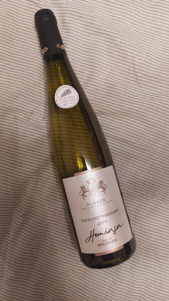 На канале я делал обзор отечественного игристого из Гевюрцтраминера. Это один из самых ароматных сортов винограда. Поэтому пробовать его разным всегда очень интересно. Пулусухое французское вино Cave de Beblenheim Heimberger Gewurztraminer было куплено в Metro C&C по цене около 1100 рублей. Давайте посмотрим что за диковинного зверя из Эльзаса нам продают. Бутылка Этот Гевюрц, как и многие его собраться с корнями из Германии, розлит в традиционную бутылку-флейту светло-зеленого стекла. Недавно обозревал Пино Блан из Эльзаса в точно такой же бутылке. На бутылке атласная этикетка, которая оформлена скорее в немецком, нежели французском стиле. Не даром по слухам во многих селениях Эльзаса говорят исключительно на немецком. Этикетка с одной стороны невзрачная, но с другой атласная, достаточно лаконичная и спокойная. Наверное, она совсем неплоха. На контрэтикетке указано, что перед нами моносортовое полусухое белое вино из Гевюрцтраминера, 13,5% алкоголя, с рекомендованной температурой под