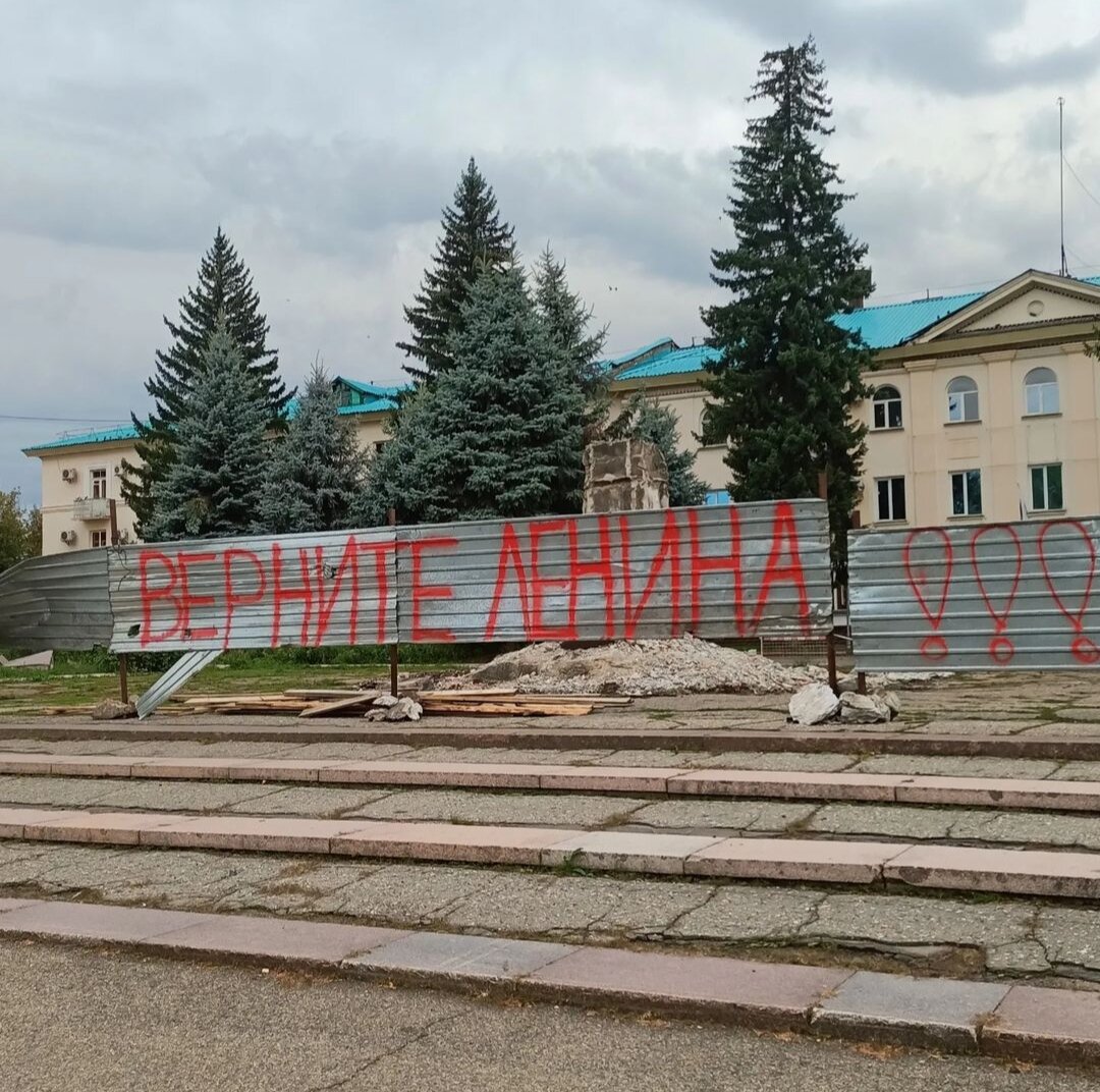 Вот такие вот надписи появились на ограждении, где когда то стоял памятник В.И.Ленину в городе Зыряновск / Алтай 2023г