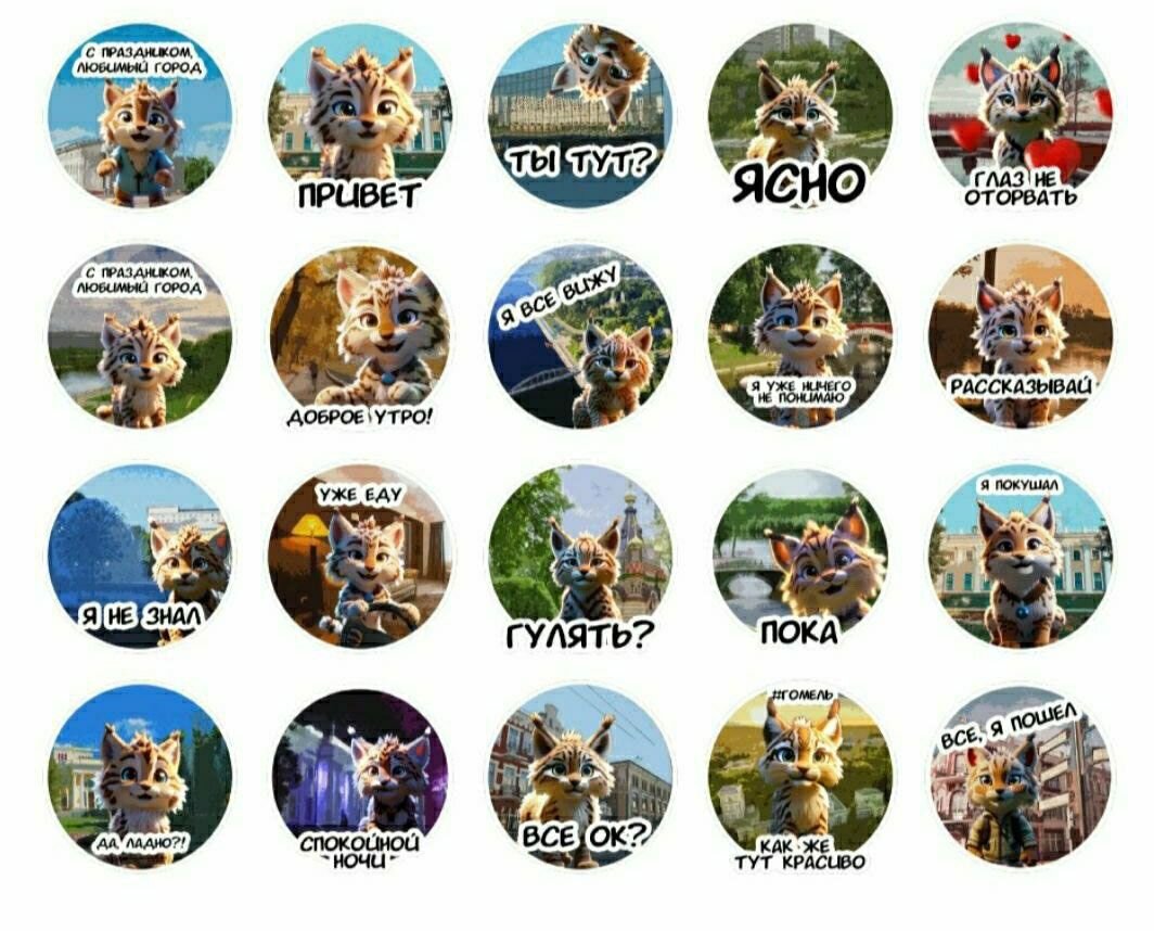 Новостью поделился председатель Гомельского горисполкома Владимир Привалов в своем tg-канале. Главный персонаж – рысенок изображен на фоне местных достопримечательностей с набором расхожих фраз от «Привет», «Пока», «Спокойной ночи» до «Как же тут красиво» и «С праздником, любимый город». Всего в наборе 20 стикеров, ознакомиться и получить полный комплект можно по ссылке. День города в Гомеле будет отмечаться 15 и 16 сентября. Известно, что в городе пройдет сразу несколько фестивалей – национальной культуры, уличной еды, хлеба, винограда, мяса и молока. А на стадионе «Центральный» ожидается настоящий «звездопад» – свое участие в большом концерте уже подтвердили «Самоцветы», «Сябры», «Аура», Маргарита Суханкина и Александр Солодуха. Главным же событием вечера станет трибьют-шоу легендарной группы Boney M. Гомелю – 881 год, хотя на самом деле гораздо больше, о чем свидетельствуют археологические раскопки: в эпоху раннего средневековья на территории нынешнего областного центра у
