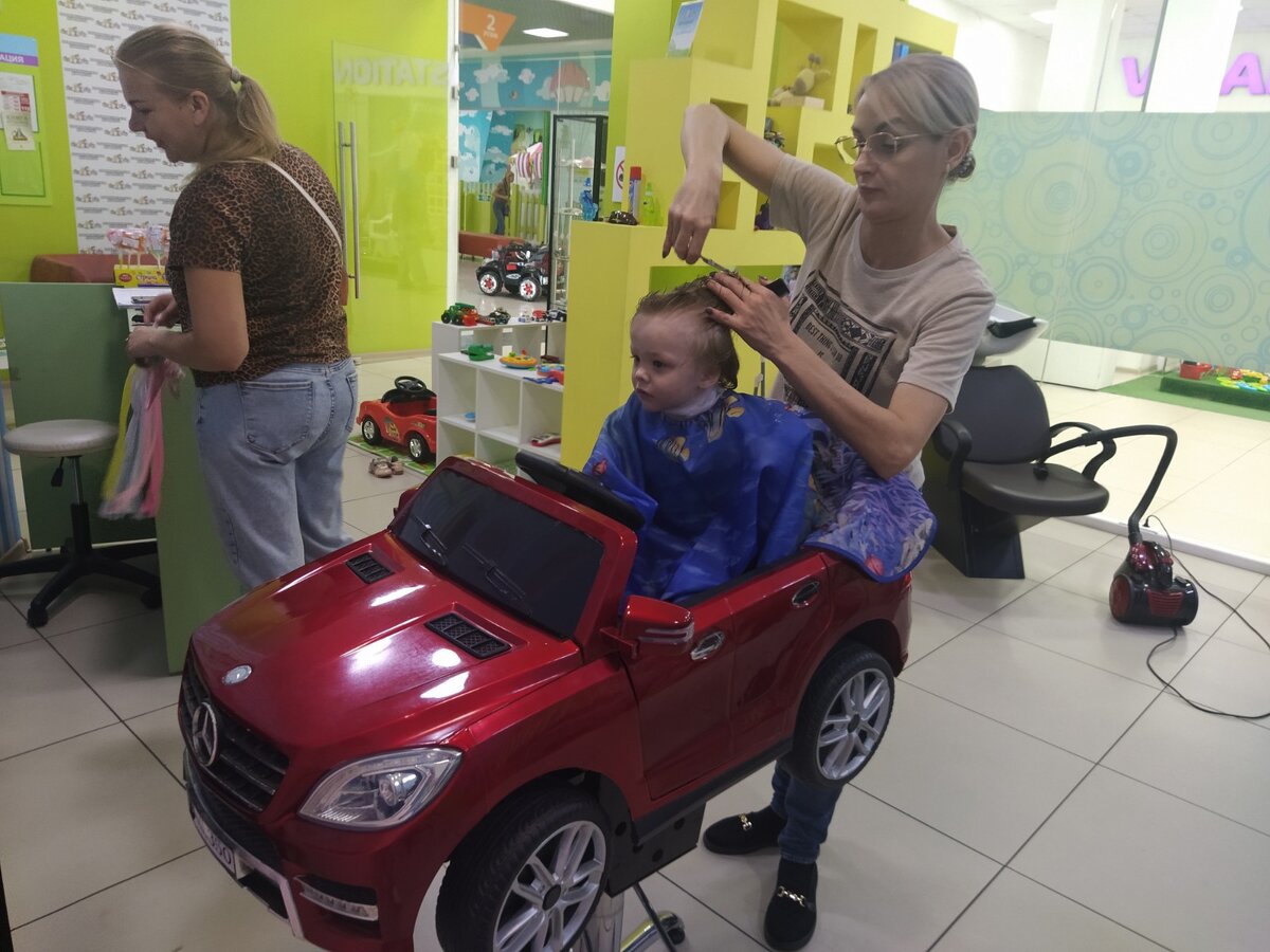 Недавно наша семья победила в конкурсе фотографий благодаря вам, друзья. Канал-организатор перечислил на карту приз - 500 рублей, которые мы вчера потратили в детской парикмахерской. У двойняшек уже есть любимая парикмахерская, где можно посидеть в кресле-мерседесе, посмотреть мультики на необычных экран, да и просто поиграть. Мы приходим сюда уже во второй раз. И оба раза в кресле мастера оказывался только Тихон, т.к. Ариша отращивает косы, ей мы только подравниваем челку дома. Обычно Тихон терпеливо ждет, пока его подстригут, гно вчера два раза немного испугался. Первый раз, когда мастер решила машинкой побрить ему виски, а это жужжащая штука его испугала. Во второй раз мальчишка занервничал, когда рядом с ним включили фен, но потом вроде привык в потоку теплого воздуха😄 Не так давно я уже рассказывала здесь о первых косичках Аришки, теперь и новую стрижку Тихона решила показать. А как ваши ребятишки относятся к стрижке? :)