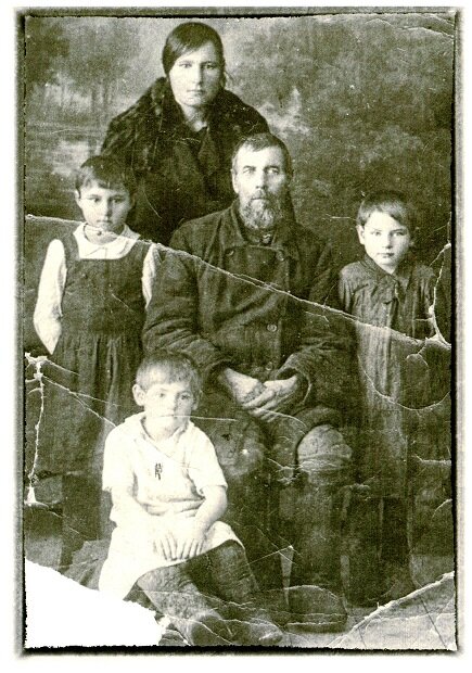 На фото мой прадед Андрей Иванович Дьяченко с внучкой Екатериной, ее дочерью Галей (слева) и детьми внука Степана – Валей (справа) и Зиной. г. Тулун, 1935 год.