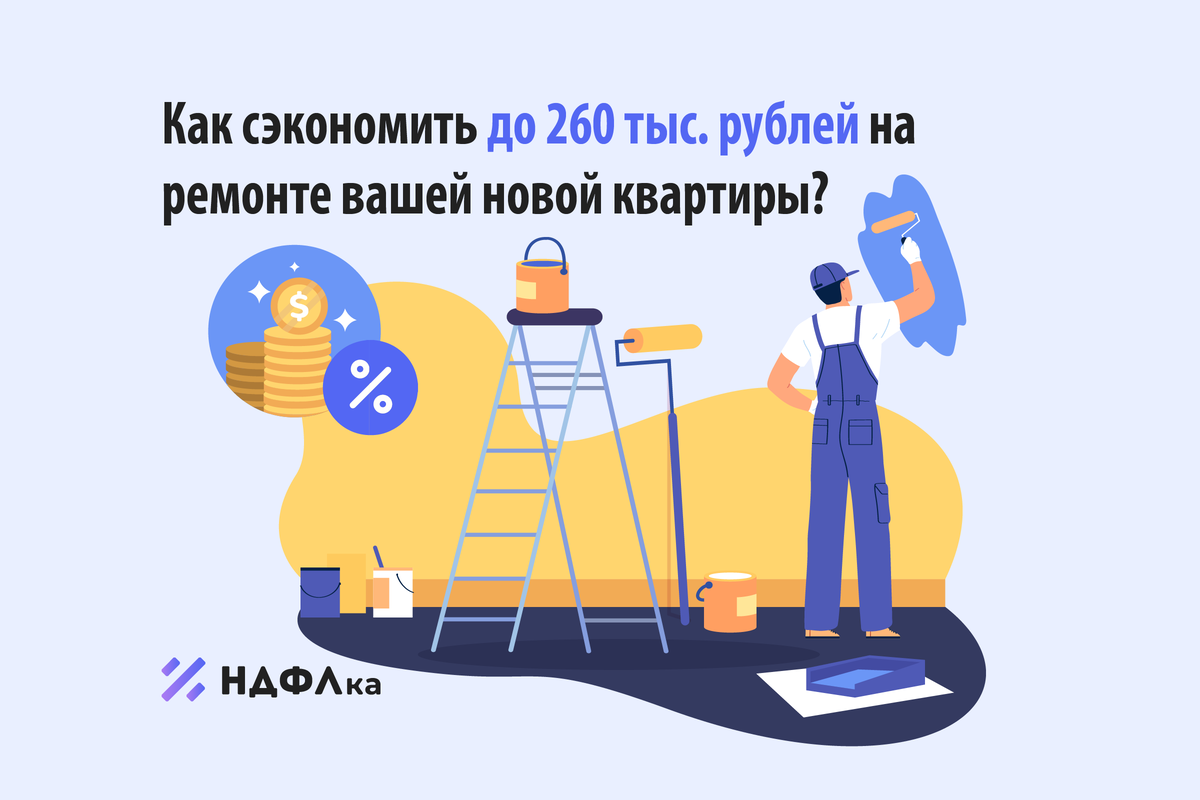 Покупать жилье в новостройке с отделкой или без - решать, конечно, вам. Если предпочли второй вариант, то у вас есть отличный шанс сэкономить на отделке квартиры. Как это работает Государство предоставляет налоговый вычет на покупку и отделку жилья - до 2 млн рублей на человека и возвращает 13% от этой суммы, то есть 260 тыс. рублей. Если квартиру покупали супруги, то они могут получить по 2 млн рублей на каждого, даже если жилье оформлено на одного из них. Итого - до 4 млн рублей вычета на одну квартиру и до 520 тыс. рублей возврата (4 млн * 13%). Допустим, супруги купили квартиру “в бетоне” за 3,5 млн рублей, на отделку потратили еще 1 млн рублей. На двоих они могут вернуть 520 тыс. рублей - по 260 тыс. рублей на каждого. Какие расходы можно учесть В отделочные работы можно включить покраску стен, укладку плитки, установку дверей и окон, монтаж потолка и другие работы по обустройству квартиры. Например, при монтаже водопроводной системы сантехнические трубы можно заявить к вычету, а