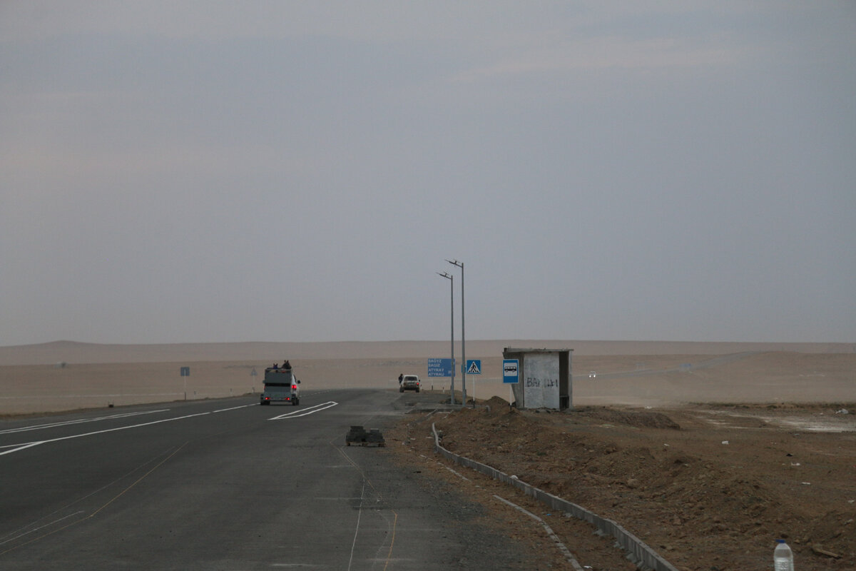 Система расселения и структура поселений в земле недавних кочевников упрощается до скучного: есть редкие главные города, между ними длинные, чаще всего прямые дороги, вдоль дорог - пыльные, похожие друг на друга посёлки. Примерно так всё и выглядит, если пуститься в длинный путь от Актюбинска почти у российской границы в сторону Мангышлака, который больше похож даже не на Казахстан, а на Среднюю Азию и Туркмению. После моего прошлого визита в мае 2017 года Казахстан определённо продвинулся вперёд в деле дорожного строительства. Теперь недавно асфальтированные дороги скорее в большинстве, а убитые грунтовки и древний асфальт - скорее исключение. И даже между Актюбинском и Атырау можно проехать напрямую, необязательно делать крюк через Уральск. Но вот участок Актюбинск - Кандыагаш, ближайший к областному центру и самый загруженный, всё ещё так себе: асфальт очень по-казахстански идёт волнами, кое-где исчезает совсем, зато рядом уже пару лет строится новая четырёхполосная магистраль. Пос