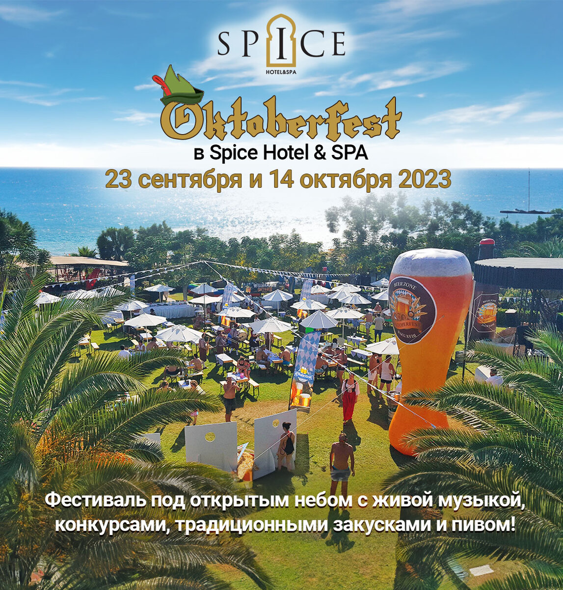 23 сентября и 14 октября в отеле Spice Hotel & SPA 5* пройдут вечеринки на открытом воздухе. Будет живая музыка, напитки, традиционные блюда, игры и многое другое! Тем, кто будет отдыхать в эти дни в отеле, рекомендуем к посещению. А тому, кто ещё рассматривает его, как место для отдыха, советуем подробнее прочитать об отеле по ссылке