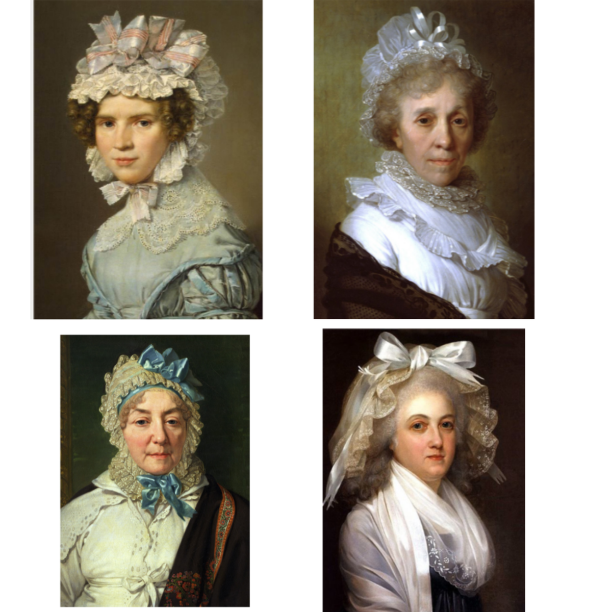 Основная мода на чепцы пришлась на восемнадцатый век, после чего, к концу девятнадцатого века, этот предмет гардероба носили только старушки, вдовы и младенцы.