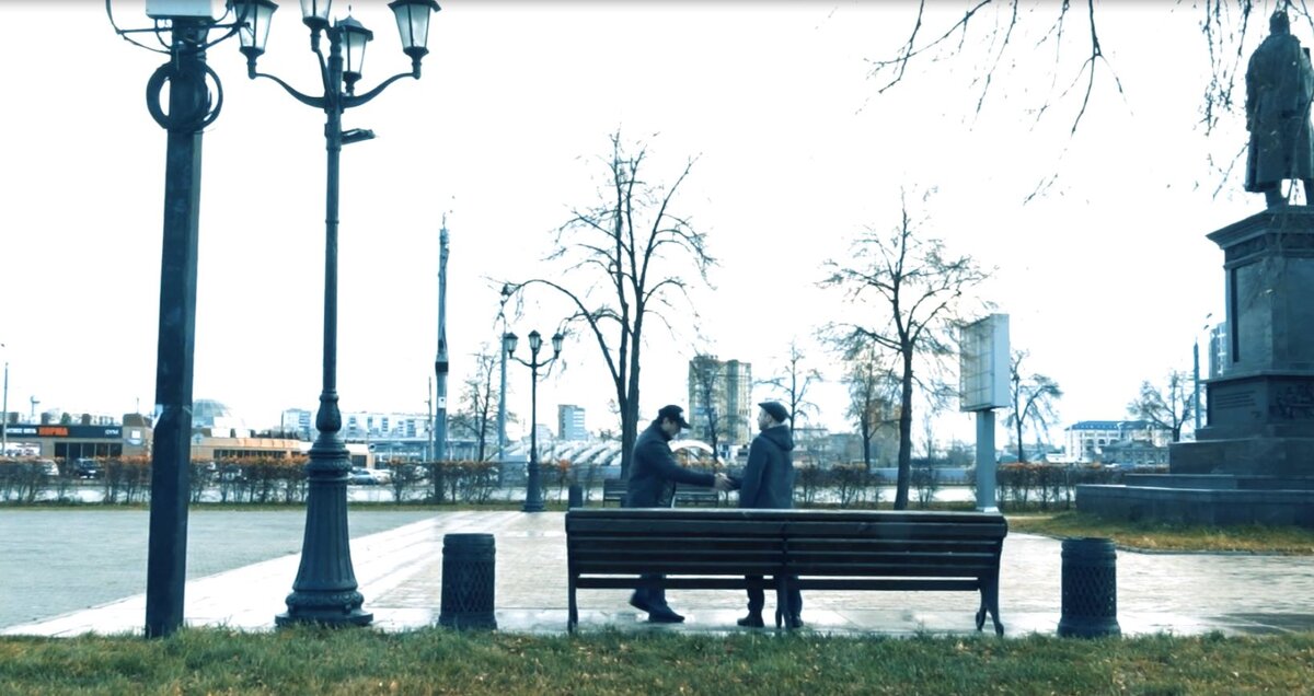Спустя несколько минут к нему по аллее подошёл мужчина лет сорока. У него за пазухой была книга, подшитая пластмассовой спиралью. Молодой человек в знак приветствия встал и протянул руку. Они поздоровались.