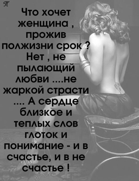 И только тот, кто мужчина, может ей это все позволить…🩷🩷🩷 Послесловие. Вроде бы всё хорошо, написано правильно. Таким и должен быть мужчина. Но, это одна сторона медали. А, что же на второй? Я хочу сказать высказать свою мысль по прочтению этой записи. Подозреваю что многие если не все женщины со мной не согласятся. Скажут что я не прав. Ну, а большинство мужчин со мной согласится, поддержит меня. Часть мужчин скорее всего скажет что я не прав, и встанет на позицию женщин. Когда женщина становится центром жизни мужчины, то такой мужчина этой женщине перестаёт быть нужен, проверено много раз по наблюдениям за различными семьями. Проблема в том, что женщины в общей своей массе не ценят то, что имеет. Так вот, мужчина, который делает центром своей жизни женщину и живёт её интересами и целями - это подкаблучник, женщины постоянно говорят, что ищут и жаждут именно такого заботливого и щедрого, который будет жить ради неё, только вот парадокс, сами женщины таких мужчин не воспринимают как мужчин, а воспринимают как личного лакея и раба, тягловую скотину, отношение примерно, как относятся к рабочему коню или рабочему инструменту, хотя даже к ним отношение лучше, потому что о них хотя бы заботятся, чтобы продлить их ресурс, отношение же женщин к подкаблучникам, как к расходнику, который надо максимально выжать и выкинуть на помойку. Большинсто замужних женщин ни одна из них нигде и никогда за спиной не говорит о своем заботливом муже не то что слов любви, а даже хотя благодарности, все говорят одно, "я позволяю этому Лоху меня содержать и решать мои проблемы". И как раз наоборот, эти женщины в разговорах с друзьями, подругами тайно, и томно воздыхают по другому мужчине годами, к кому у них остались чувство и желание продолжения отношений. Это как раз по тем, кто умудрялся наоборот жить за счёт этих женщин, кто сидел на их шее годами, вот таких женщины любят и потом жалуются всем, что вот я все для него, я пахала, я тянула, я ему носочки трусики выбирала, а он...И такая печальная картина имеет место быть в наших Российских семьях.Вообще, вот эта вот перекошенная ситуация, когда воспитанному на постсоветском пространстве мужчине внушают с детства, что женщину надо добиваться, что привязать её можно только заботой и полным обеспечением, то это полное извращение действительности. Мужчине во все времена, некогда было заниматься тем, чтобы делать центром своей жизни женщину, мужчины всегда решали задачи выживания, добычи пропитания, строительства, войны и прочих стратегических задач. Мужские цели всегда были направлены во вне, во внешний мир. Это как раз женщина решала задачу, как к себе приманить и привязать такого мужчину, чтобы пристроиться к его ресурсам и таким образом выжить, потому что сама женщина выжить не могла. Поэтому этот желанный мужчина становился центром жизни женщины, это женщина изощрялась в искусстве привлечения к себе мужчины, манипуляции, борьбы с конкурентками, это отсюда все эти как в сказке у Пушкина "я ль на свете всех милее всех прекрасней и белее". А после того, как женщина приманивала к себе такого мужчину, она заботилась о нём, думала о том, чтобы закрыть бытовые вопросы своего мужчины, чтобы он не отвлекался на второстепенные вопросы и чтобы занимался своим основным делом - в этом и был естественный и обоюдный симбиоз, под название