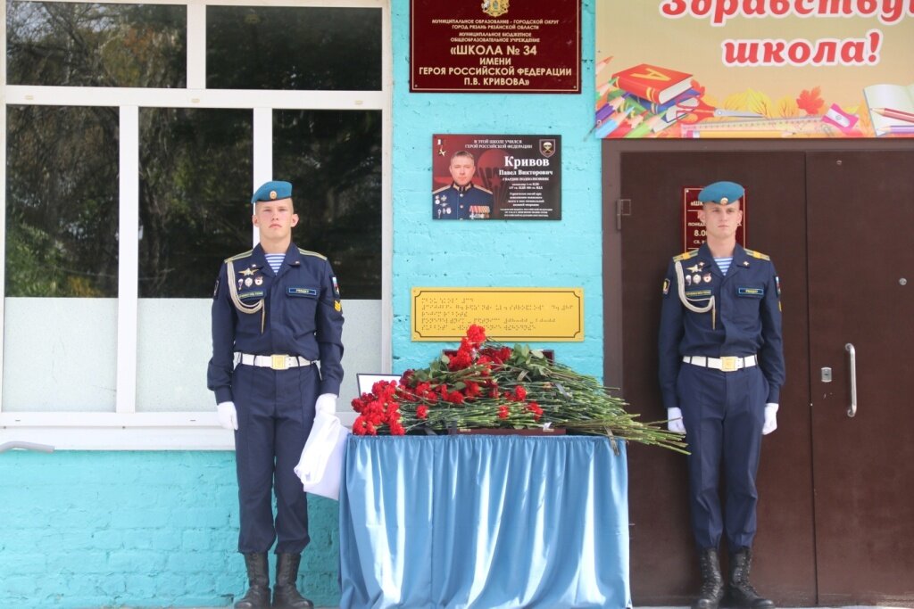 В школе № 34 имени Павла Кривова открыли мемориальную доску Герою России, сообщает пресс-служба городской Думы. Торжественный митинг, посвященный присвоению школе № 34 имени Героя России Павла Кривова и открытию мемориальной доски, прошел 4 сентября. В нем приняли участие родственники Кривова, губернатор Рязанской области Павел Малков, первый заместитель председателя правительства Анна Рослякова, председатель Рязанской областной Думы Аркадий Фомин, глава муниципального образования, председатель Рязанской городской Думы Татьяна Панфилова, представители региональных органов власти, сослуживцы Героя, учителя и школьники. Павел Викторович Кривов окончил школу № 34 в 1989 году, Рязанское высшее воздушно-десантное командное училище имени генерала армии В. Ф. Маргелова — в 2004 году. В 2022 году назначен командиром парашютно-десантного батальона 137-го гвардейского парашютно-десантного полка. С 24 февраля 2022 году принимал участие в специальной военной операции, погиб 9 сентября 2022 года по