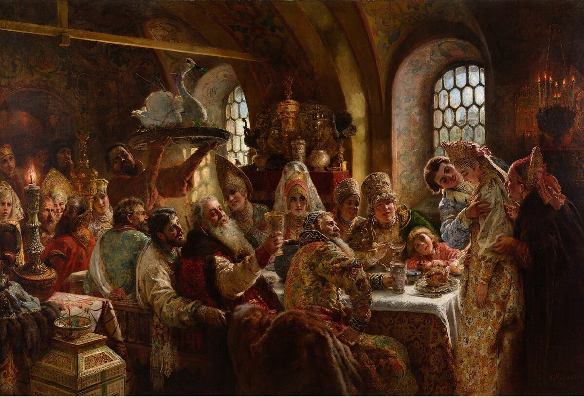 Русское боярство, а вслед за ним и дворянство, действительно не знало меры в еде. Гости должны были уехать от хозяина пьяными и сытыми, иначе пир не удался.