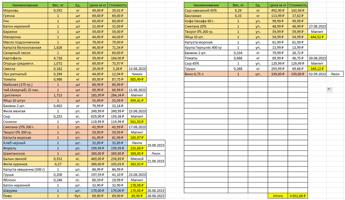 Приветствую вас на моем канале. Продолжается наш эксперимент. Остается всего 10 дней. И будем подводить его итоги. А пока будем продолжать. Рекомендую начинать читать с самого начала. Вот первая статья. На этот день было куплено вот такое количество продуктов. Уже потрачено 4 652 рубля из 6 000, выделенных на этот эксперимент. Крайняя покупка была бутылочка красного вина. Это было в субботу. Можно было позволить себе расслабиться. Утром в воскресенье завтрак был таким. Кружка кофе с двумя бутерами с сыром. На обед у меня была пюрешка с последней сосиской и половинкой помидора. А на ужин был рис с последней порцией рыбы. Перед сном я съел еще одну грушу, и чуть позже выпил кружку кофе без ничего. Вот так прошел мой воскресный день, что касается питания. Хочу еще раз поблагодарить мою жену за ее участие в эксперименте. Если бы не она его бы не было. У нее есть свой канал, переходите, подписывайтесь. Спасибо за внимание. Продолжение тут:
