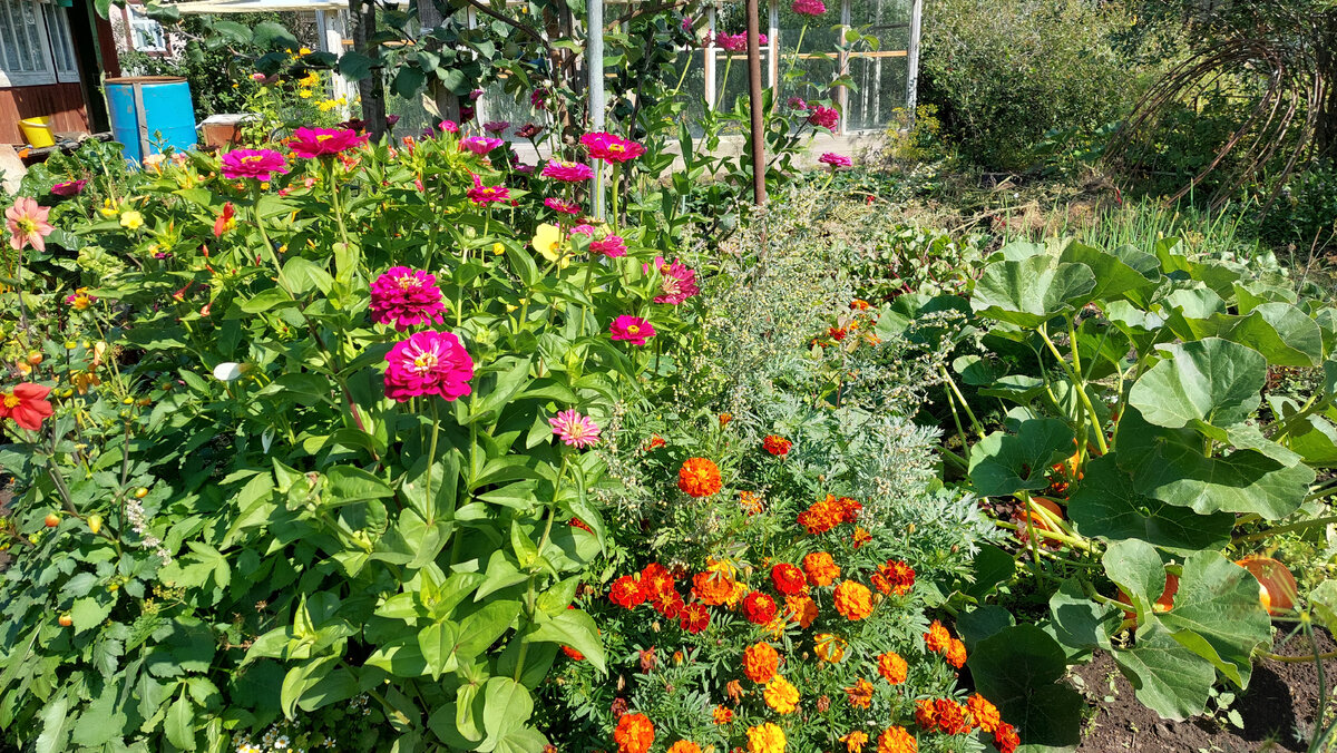 Это строки А.С. Пушкина из стихотворения "Осень" В сентябре установилась прохладная погода, но мы не сетуем, нам так полезнее для здоровья. Привыкли уже с детства к этому климату. Работать в саду стало гораздо проще и дышится легче. Можно заниматься пересадкой цветов, делить хосты, выкапывать луковичные. Цветов в саду немного, в основном многолетники. Не все радовали своим цветением в это лето, и по разным причинам. Аномальная жара в мае вдруг сменилась на жуткий холод в начале июня, вплоть до заморозков. Затем, когда в июне вернулось лето, началась засуха. Небо не посылало нам ни капли дождя в течении месяца. Не распустился ни один цветок Гортензии. Здесь я возможно и сама тому причиной, не подкормила ничем за все лето, а надо было бы. Куст Хризантем не порадовал своим цветение