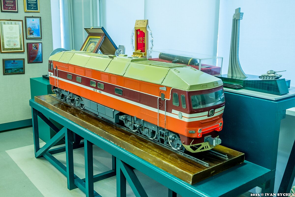 Как уже говорилось, в субботу, 2 сентября, Коломенский завод отмечал юбилей – 160 лет. По этой причине на территорию завода и в его музей пускали практически всех желающих (с соблюдением правил, естественно). И попал я в музей почти по-партизански – в тот момент, когда его уже открыли, но широкой публике не объявили, что уже можно. И это – реально повезло, парой часов спустя я пытался в него заглянуть – народу было немеряно и очень душно. Потому что музей – очень небольшое пространство с большим числом экспонатов. Все я, безусловно, не смог бы и отфотографировать, и выложить в сеть, и рассказать обо всем. Пожтому сегодня, в основном, макеты локомотивов. 1-2. Почти сразу у входа посетителей встречает модель тепловоза ТЭП70-0008. Достаточно большая модель. А вот почему именно 0008? Предположу, что именно восьмая машина была первой серийной, а семь предыдущих – опытные. 3. В следующем «зале» (весьма условно, потому как полноценный зал, там, скорее один, а все остальное – это отгороженные