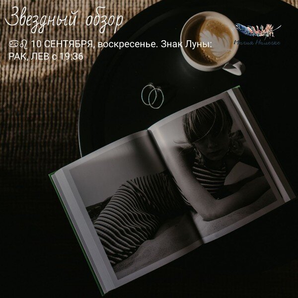 Наводки на новый день! ♋♌ 10 СЕНТЯБРЯ, воскресенье. Знак Луны: РАК, ЛЕВ с 19:36 Тренды дня: Энергии вчерашней безмятежности и расслабленности с нами и в первой половине дня воскресного. Плюс сегодня подключается Нептун трином к Луне. Вода, вода- кругом вода. И мы словно котики на лежбище, никуда не хочется бежать, спешить и решать. Ленность словно будет нас размазывать. Если острой необходимости нет, то и полежать сами магистры велели. Понежится и не спешить. Обращаем внимание на знаки мира, вещие сны, интуитивные подсказки. Интуиция и чувствительность будут на высоте, хорошо заниматься благотворительностью, посетить храмы или места силы. Достаем свои мантических помощников самое : таро, руны, маятники, мак- карты и под чаек- кофеек ведем разговор с Миром. Сегодня связь с ним отличная. С 15:47 до 19:36 Луна без курса- подключаем внимательность в бытовых вопросах и на дорогах. А новые начинания и громкие обещания откладываем в сторону. Плюс в этот отрезок о себе даст знать оппозиция Л