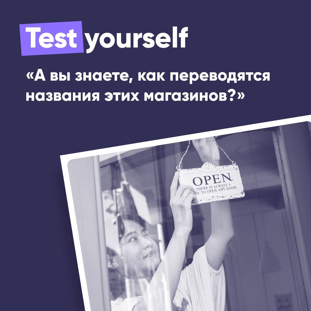 А вы знаете, как на английском называются привычные нам всем магазины? Пройдите небольшой тест, чтобы проверить себя! 🔎✅ Узнайте правильные ответы завтра в посте с большой подборкой названий разных магазинов на английском.