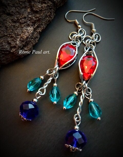 МАТЕРИАЛЫ: хрустальные стразы-кристаллы Сваровски, синий богемский хрусталь, ювелирная сталь Длина серьги: 90 мм Всё просто. Простые линии, энергия цвета... Выше всего у ювелиров ценится цветной хрусталь. Для создания цветного хрусталя используются разные добавки: кобальт дает синий цвет, для красного добавляют кадмий или соединения золота, для розового - кремний. Зеленым хрусталь делает окись меди, а фиолетовый получается при добавлении окислов марганца. Цветной хрусталь в СССР был в основном привозным из стран Европы. Изделия из Чехии (богемский хрусталь) или Германии были и остаются даже сегодня мечтой любой женщины. В наличии один авторский экземпляр. Без повторов. ЦЕНА ИЗДЕЛИЯ 2400 руб. +Доставка по РФ 1 классом Почтой России от 350 руб. (рассчитывается индивидуально, с учетом региона)