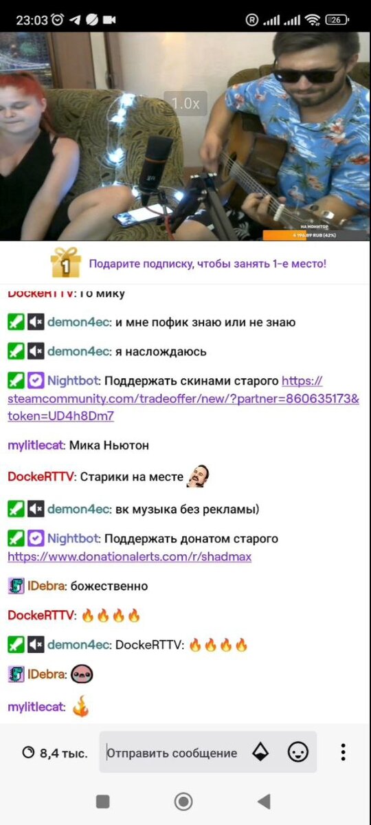 В дин из вечеров я сделал анонс о стриме в тг и пил кофе у знакомого в центе города. Как в вдруг жена начала уговаривать провести стрим с гитарой, а не как обычно в игре. Спросил в своём телеграмме, не хотели бы ребята спонтанный ирл стрим с песнями. И они все дружно сказали да!И чтож!? Из-за того, что было уже довольно поздно в попыхах настраивал новую сцену, вебку, свет из чего попало. Последующие 3 часа были проведены довольно приятно(не считая, что я не пел несколько лет и теперь стыдно) и уютно. Ребятам понравилось, просят теперь ещё.