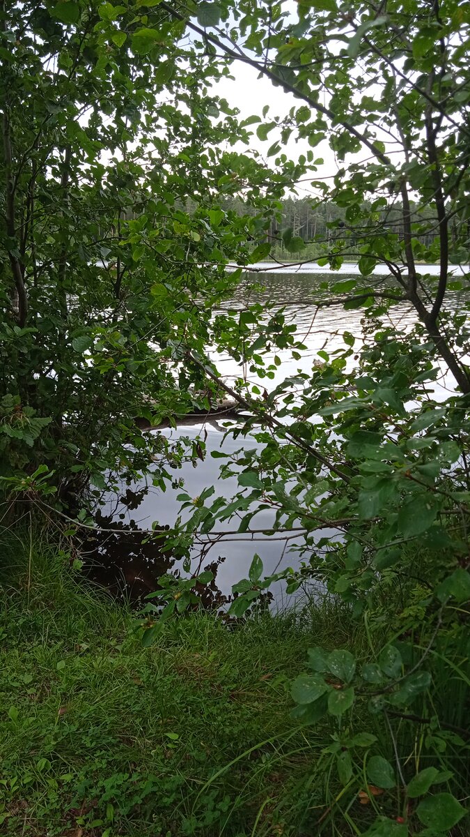 Уходить совершенно не хотелось, но надо было идти дальше. Ведь исследование берега только началось... Посмотрев вдаль, на просторы озера и переведя взгляд на забавных играющих птиц, Она не спеша продолжила свой путь вдоль озера. Широкая дорога, комфортная для передвижения, изгибалась: то уходя от озера, то возвращаясь обратно. Кусты черники вдоль дороги, как бы приглашали путников полакомиться ягодами. И проходя мимо 🙋 сбившихся с пути велосипедистов, которые с радостью вкушали сладкие ягоды, Алёна радовалась за них. Ведь ягоды дарят детскую радость: найти, насобирать в ладошку и с радостью закинуть в рот сразу много- много ягод и ощутить впечатляющий вкус ягодной смеси черники и брусники. Пройдя некоторое время по упомянутой дороге, неожиданно перед Ней проявилась огромная поляна, которая оканчивалась пляжным спуском к озеру. Ох, это озеро, оно манило к себе вновь и вновь... Ну и конечно, как же без купания. Обязательно каждому путнику нужно окунуться в прохладные и освежающи