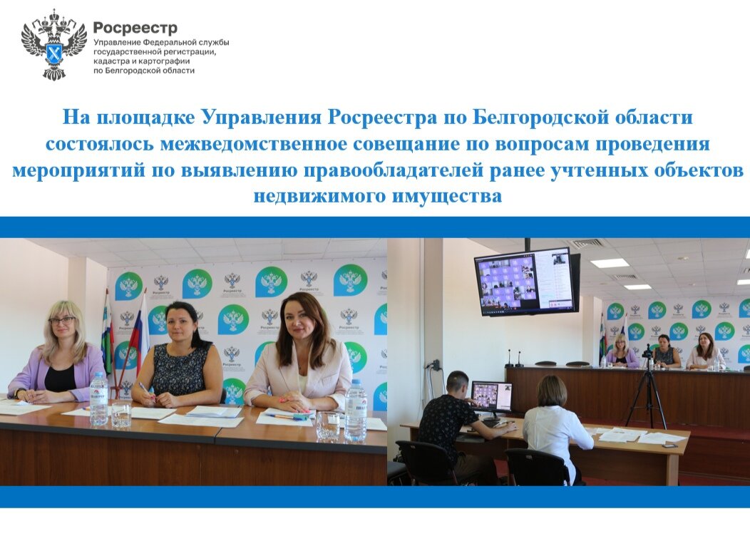 На площадке Управления Росреестра по Белгородской области состоялось межведомственное совещание с участием представителей министерства имущественных и земельных отношений Белгородской области, а также органов местного самоуправления региона по вопросам проведения мероприятий по выявлению правообладателей ранее учтенных объектов недвижимого имущества. Рабочая встреча прошла в формате видео-конференц-связи.