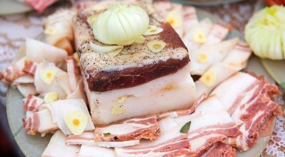 Сало собственного приготовления — роскошная закуска, которая идеально подойдет к горячему борщу или супу. Только представь: ломтик свежего хлебушка, домашнее сальцо и лучок… Идеальная картина! Приготовь сало в чесночном маринаде, чтобы порадовать себя таким вкусным и сытным обедом. Больше тебе не захочется использовать способ сухого посола. Ведь сало в маринаде с пряностями и чесноком получается необычайно ароматным и нежным. Перед кусочком такого устоять просто невозможно! Как просто и вкусно приготовить сало в чесночном маринаде Для приготовления идеальной закуски, следует правильно сделать маринад. Для этого тебе понадобится вода и пряности. Помни, что только в остывшую до теплого состояния смесь можно добавлять измельченный чеснок. Так маринад выйдет изумительным! Необходимые ингредиенты: Способ приготовления: По истечении трех дней сало можно доставать из маринада. Его необходимо слегка просушить, убрав остатки жидкости и пряностей. Затем рекомендуем каждый кусочек отдельно заверн