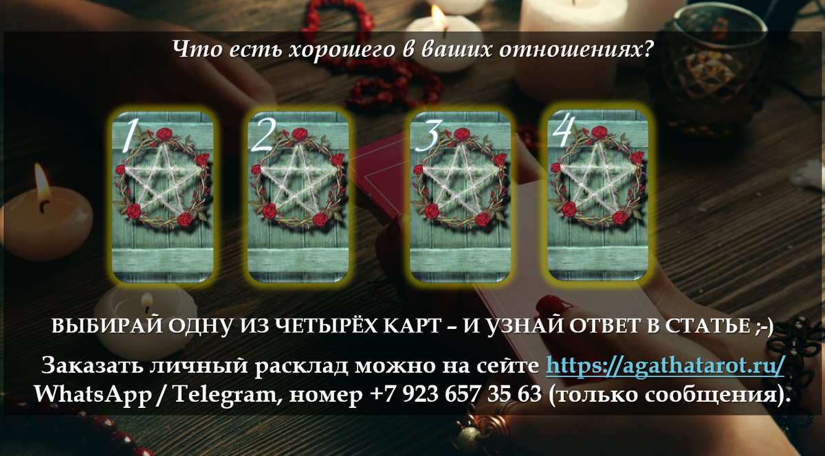 Привет, мой любимый читатель! Сегодня у нас интересное, позитивное послание о том, что хорошего есть в твоих отношениях с человеком… Даже если ты сейчас находишься в сомнениях, задавая себе вопрос – «А есть ли в них вообще что-то хорошее?» Обрадую тебя – ЕСТЬ, иначе тебе бы не пришло сегодня никаких посланий. Так что выбирай и читай – настраиваясь на светлый лад. ВНИМАНИЕ! БОНУС к хорошим новостям – МИНИ весточки с Неба, они как-то связаны с основным посланием... Не спрашивай – не знаю как! А ТЫ – ЗНАЕШЬ... ☝Помни, читатель! Послание ниже общее И НЕ МОЖЕТ БЫТЬ 100% ДЛЯ КАЖДОГО, кто его прочел.
