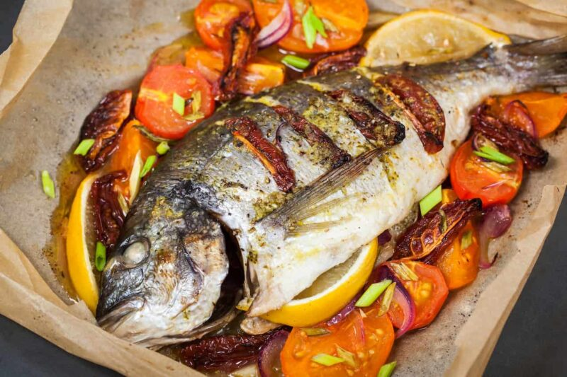 Дорада - это морская рыба, обычно встречающаяся на берегах Средиземного моря. Эта белая рыба отличается нежным мясом и мягким вкусом, богата белком, витаминами и минералами, такими как железо и кальций. Дорада – очень ценная рыба в мировой кухне, поскольку ее можно использовать в самых разных рецептах, например, тушить, жарить, запекать, она всегда выглядит роскошно. Это отличный источник белка с низким содержанием насыщенных жиров, что делает его полезным для здоровья вариантом для включения в сбалансированный рацион. Ингредиенты Как приготовить запеченную дораду с картофелем очень просто 1. Очистить картофель и нарезать его ломтиками. 2. Лук и болгарский перец нарезать толстой соломкой. 3. Два зубчика чеснока нарезать ломтиками. 4. Налить оливковое масло в сковороду, чтобы обжарить картофель. Добавить лук и болгарский перец. Готовить все 15-20 минут. 5. Переложить картофель в форму для запекания и выложить поверх картофеля приправленную рыбу. 6. Залить рыбу белым вином и запекать в д
