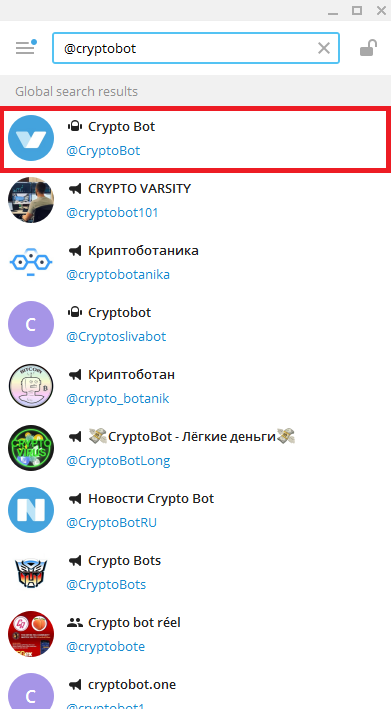 Убедитесь, что вы используете правильный адрес для бота. Единственное правильное имя пользователя - @CryptoBot. Помните об этом, чтобы в будущем не попасться на удочку мошенников при поиске крипт