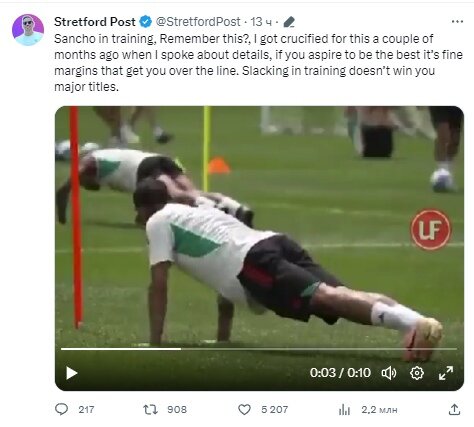Конечно, нельзя делать выводы по десятисекундному видео, но кое-что об отношении Санчо к тренировкам это, пожалуй, может сказать.