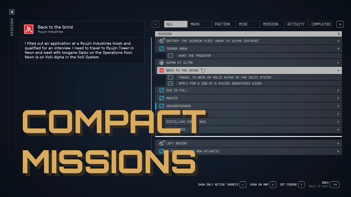 Compact Mission UI: мод, который улучшает меню миссий в Starfield